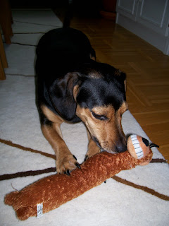 Världens bästa hund...se så glad han är, en ny leksak livar upp!